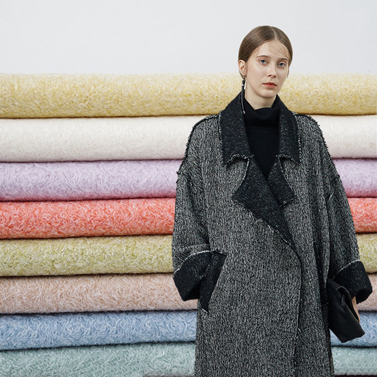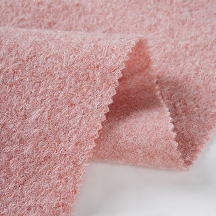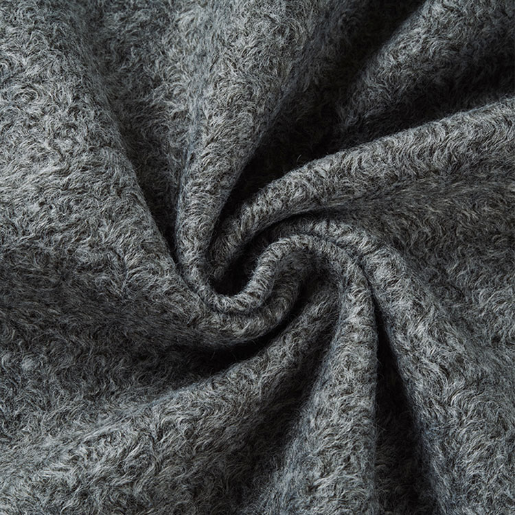 Winterjas polyester middelgewicht wollen stof, gebruik breientechnologie, een zijpoetsen, met een kleine cirkel kroezen op het stofoppervlak, geschikt voor vrouwen overjas, comfortabel voor kleding.