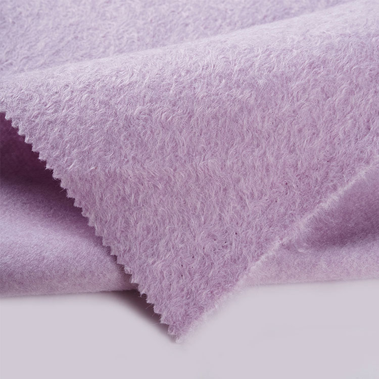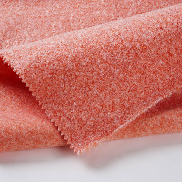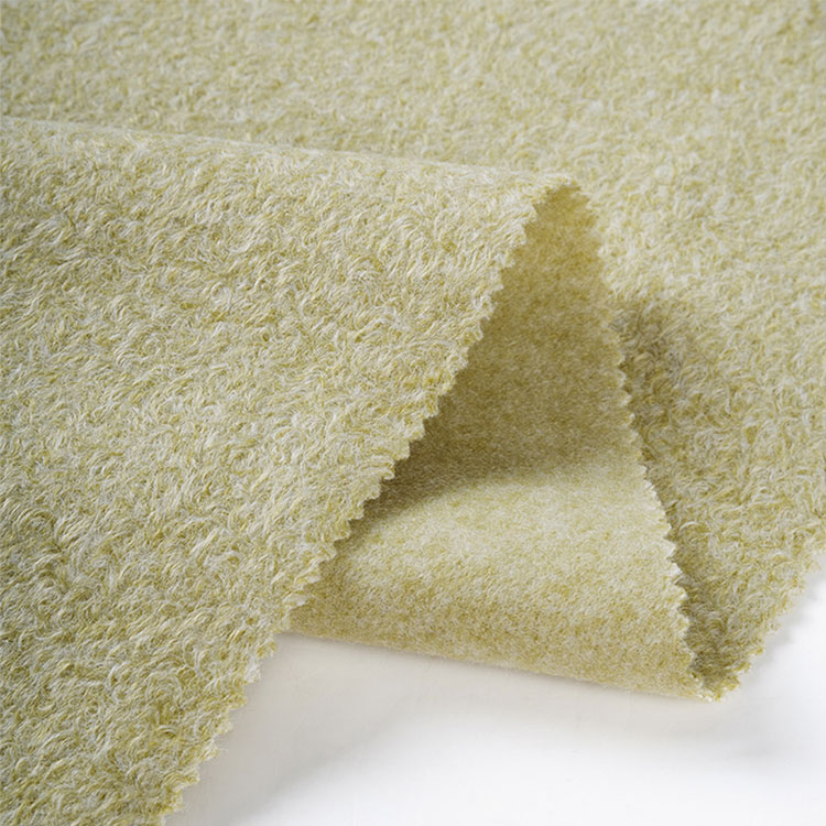 Winterjas polyester middelgewicht wollen stof, een zijpoets gebreide stof, heb een klein kroezencirkelontwerp op het oppervlak, wat stereoscopischer met kationisch garen, gewoon verven voor meerdere kleuren.