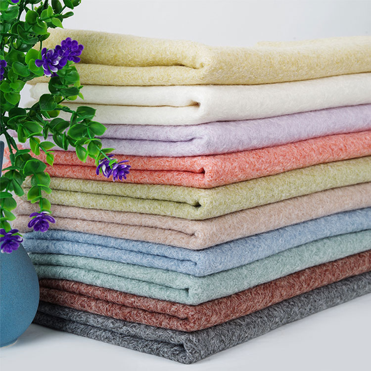 Winterjas polyester middelgewicht wollen stof wordt gemaakt met 50%kationisch, 50%polyester, 150 cm breedte, een zijpoets gebreide stof, mddle-gewicht is ongeveer 450 gsm met zachte handaanraak.